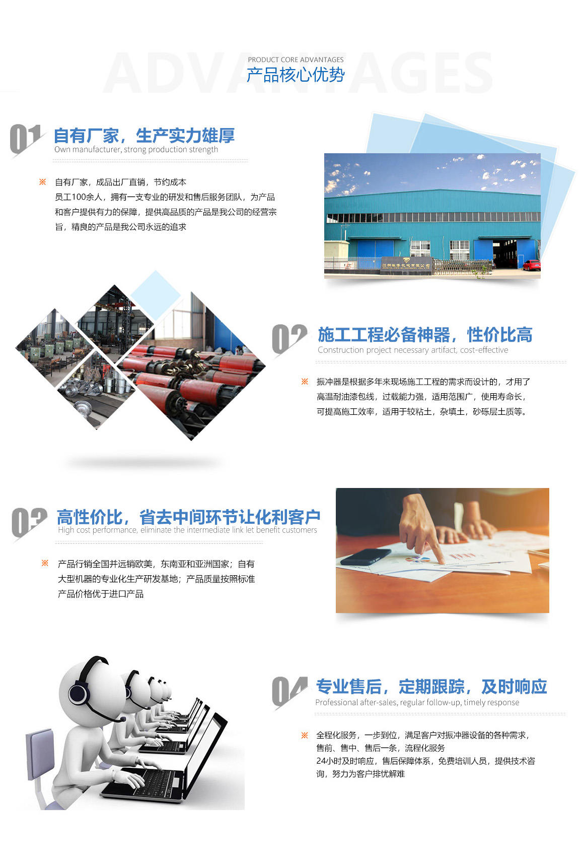 ????????江陰振博機(jī)械有限公司,江陰市振沖機(jī)械制造有限公司 (原江陰市振沖器廠),是一個(gè)致力于生產(chǎn)、銷售、開(kāi)發(fā)、施工為一體的專門制造軟弱地基施工機(jī)械振沖器的生產(chǎn)廠家。
